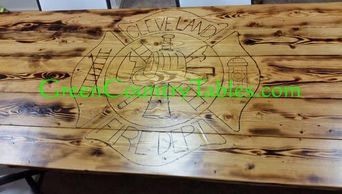 Enjoyed wood burning the Cleveland Fire Department logo on their table!