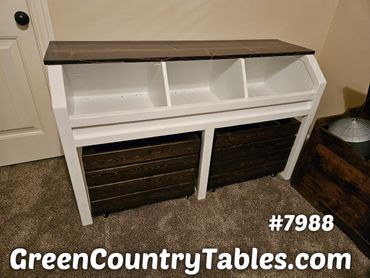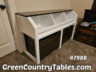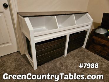 Bottom - 6ftL x 18" x 20"T, 5 cubbies on bottom and framed edge seat - $475