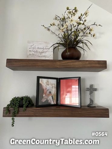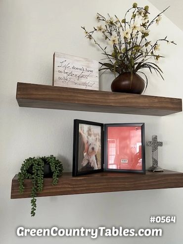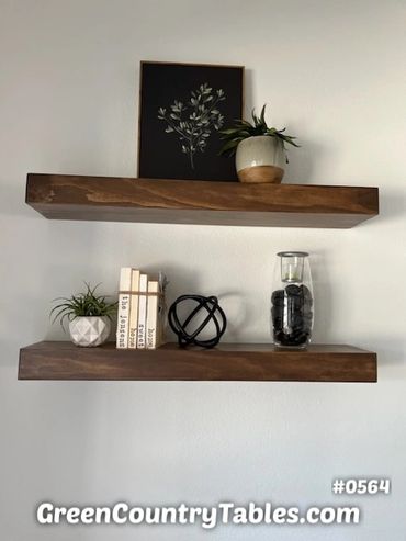 60"L x 3.25" x 3.25" - $60 (kona stain, pictured with 2 white corbels $25ea, tan tile)